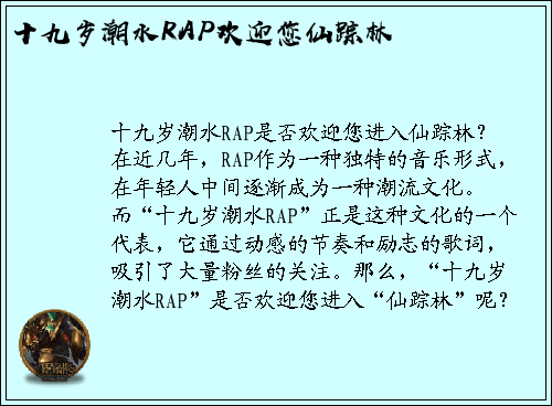 在近几年,RAP作为一种独特的音乐形式,在年轻人中间逐渐成为一种潮流文化。而“十九岁潮水RAP”正是这种文化的一个代表,它通过动感的节奏和励志的歌词,吸引了大量粉丝的关注。那么,“十九岁潮水RAP”是否欢迎您进入“仙踪林”呢?